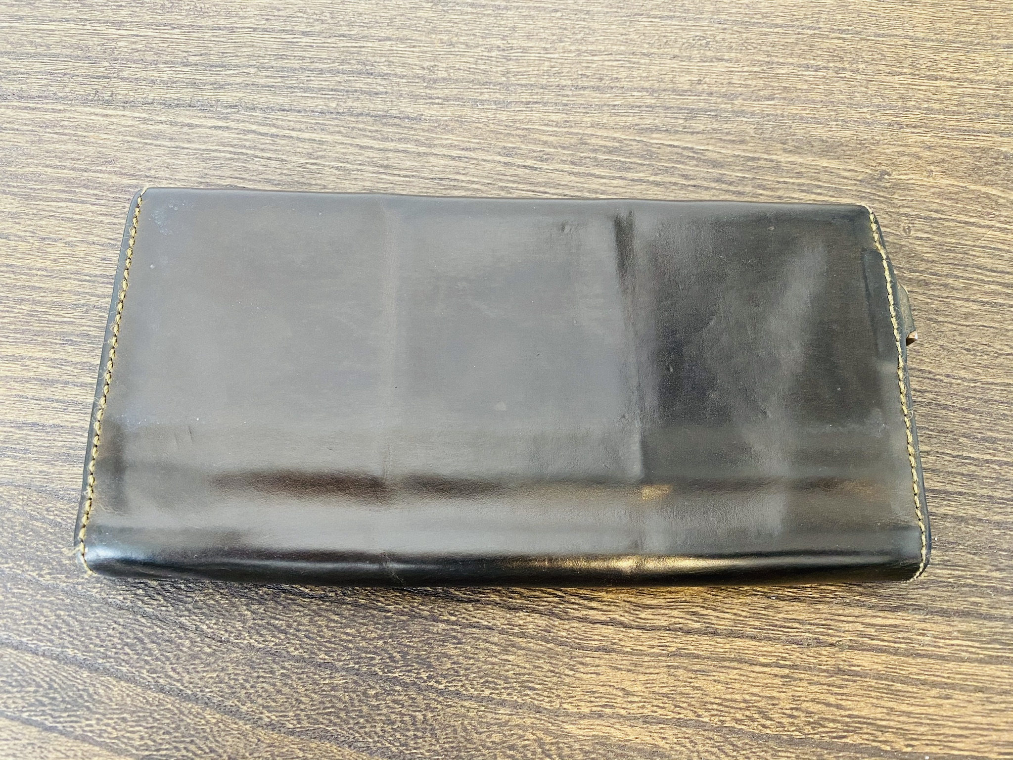 すると…今まで少しマットな表情をしていたお財布が光沢感のあるツヤツヤなお財布に変貌しました。